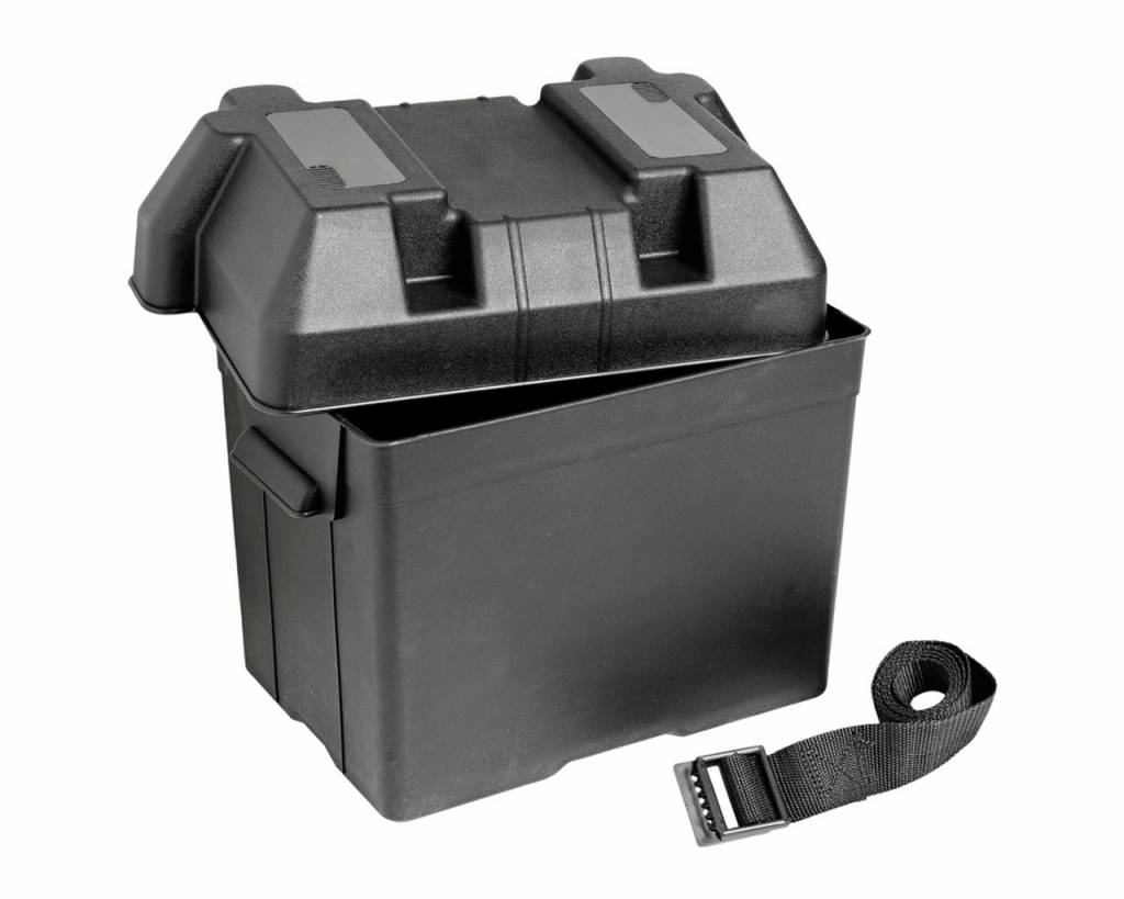Accubak verkrijgbaar in meerdere maten incl. spanriem. Met een accubak kunt u de accu veilig opbergen.