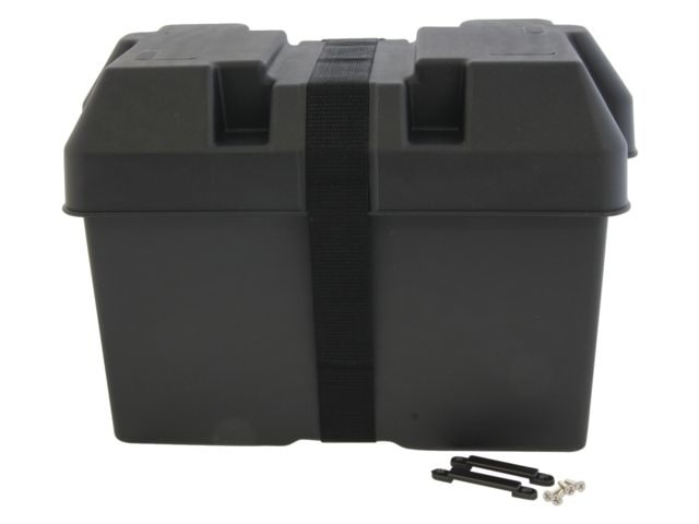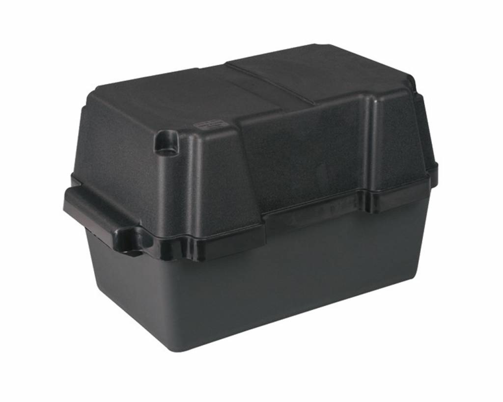 Accubak verkrijgbaar in meerdere maten incl. spanriem. Met een accubak kunt u de accu veilig opbergen.