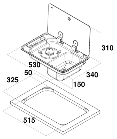 allpa Gaskomfoor met spoelbak vierkant Links en afdekplaat, brander: 1x medium
