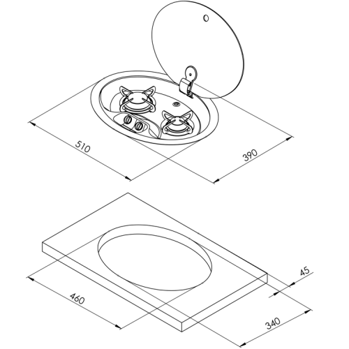 allpa Gaskomfoor ovaal 2-pits gas inbouw met glasplaat
