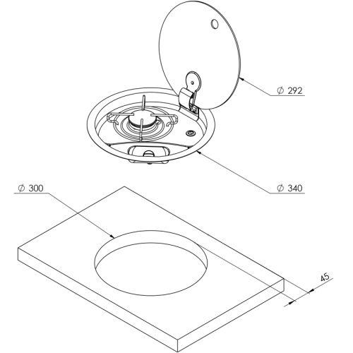 allpa Gaskomfoor rond met 1-pits gas inbouw met glasplaat, Ø340x80mm
