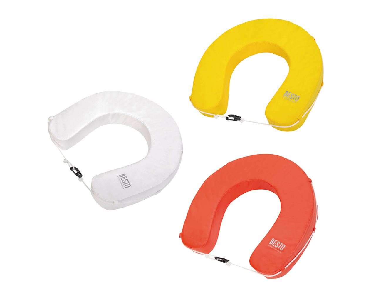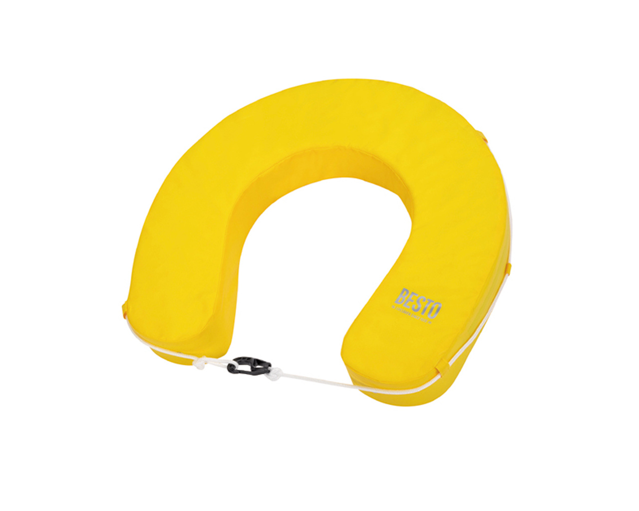 Hoefboei voorzien van een sterke wipe clean hoes. Vulling is een zachte schuim met gesloten cel. Rondom zit een grijplijn met kunststof snaphaak en ring.
