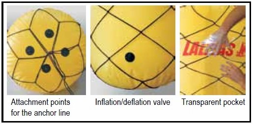 • Grote opblaasbare markeringsboeien, gemaakt van heldergeel PVC.