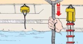 - In een man-over-boord situatie, trekt U aan het koord en de ladder rolt uit zodat de drenkeling weer aan boord kan klimmen.