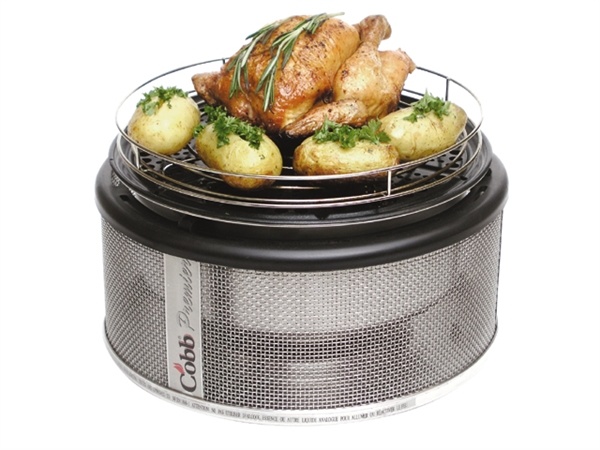Het Cobb rooster staat bovenop de basisplaat. U kunt het Cobb rooster goed gebruiken voor het bereiden van brood, grote stukken vlees of het roken van een visje. Omkeren is niet meer nodig. Het rooster is ideaal als u de Cobb barbecue als oven wilt gebruiken.