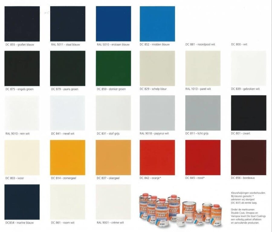 Naast de standaardkleuren kan met behulp van het double coat colour systeem snel een kleur in een variant volgens RAL, NCS of andere kleurencollecties samengesteld worden.