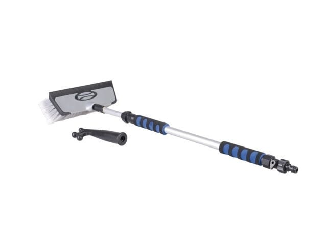 De dekborstelset bestaat uit een aluminium geanodiseerde telescopisch steel met soft grip. Met een zachte borstel en een opschroefbare bootshaak. De steel en borstel zijn voorzien van een waterdoorloop waardoor u makkelijk de boot kunt schoonmaken. De steel heeft een quick-connect slangaansluiting en is voorzien van een afsluiter.