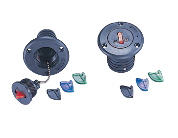 Een kunststof dekvuldop met 4 kleur gecodeerde sleutels & 6 naamlabels