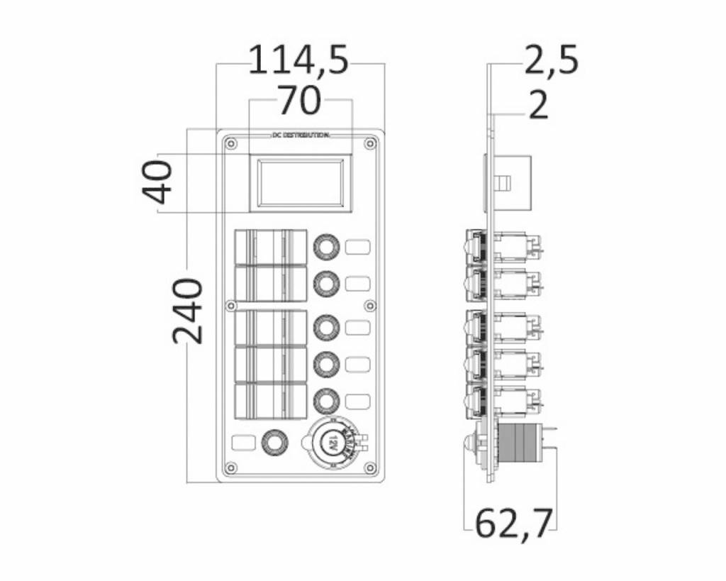 Electrical panel PCAL series with 9/32V digital voltmeter