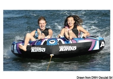 2-zits versie van de beroemde "grote donut". Gemaakt van elektrisch gelast PVC + nylon cordura + neopreen bescherming. Voorzien van speciaal snel opblaas/leeg ventiel.