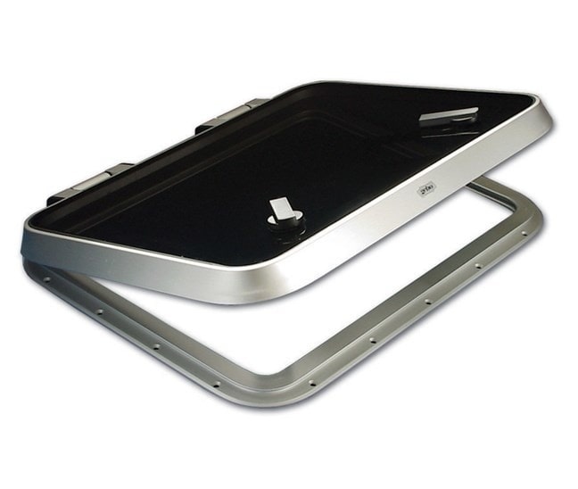 Het luik heeft een traploze opening tot 180°. Door de sterke scharnieren kan het luik in iedere gewenste ventilatie stand worden gezet. Een diepe groef in het onderframe houdt water tegen wanneer het luk geopend is. Unieke Airco-Lock anti-diefstal ventilatie stand