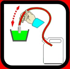 Plaats de pomp in de container met de vloeistof en het uiteinde van de slang in de transfercontainer; zorg ervoor dat u de tweede container op een iets lager niveau plaatst. Roer de pomp door de vloeistof om deze naar de zwanenhals van de slang te laten stijgen en in de andere container te laten vallen. Koppel de pomp los van de slang om de stroom te stoppen. Geen stroom nodig, snel, veilig en schoon.