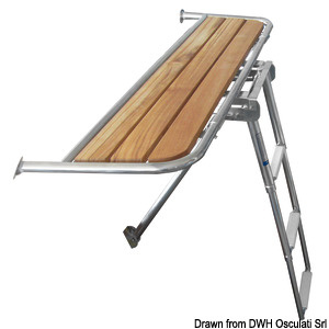 Gemaakt van spiegelgepolijst AISI316 roestvrij staal met echt Iroko loopvlak. Verstelbare bevestigingsverbindingen.