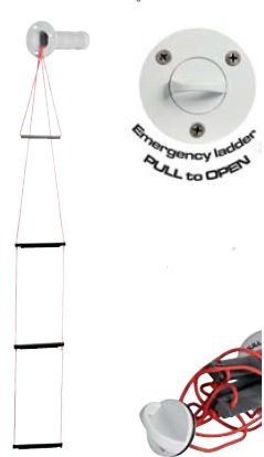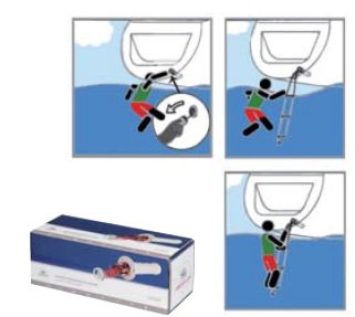 - Het gebruik is zeer eenvoudig: de persoon in het water trekt aan de ring van de sluitdop waarna de trap naar buiten komt.
