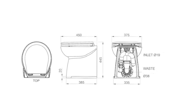 Jabsco De Luxe 17" elektr. toilet, recht met solenoid, soft closing