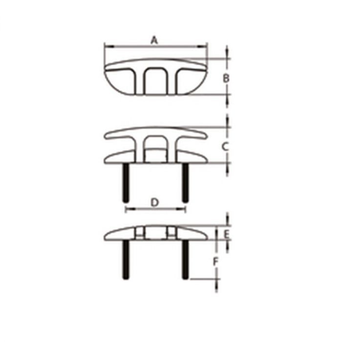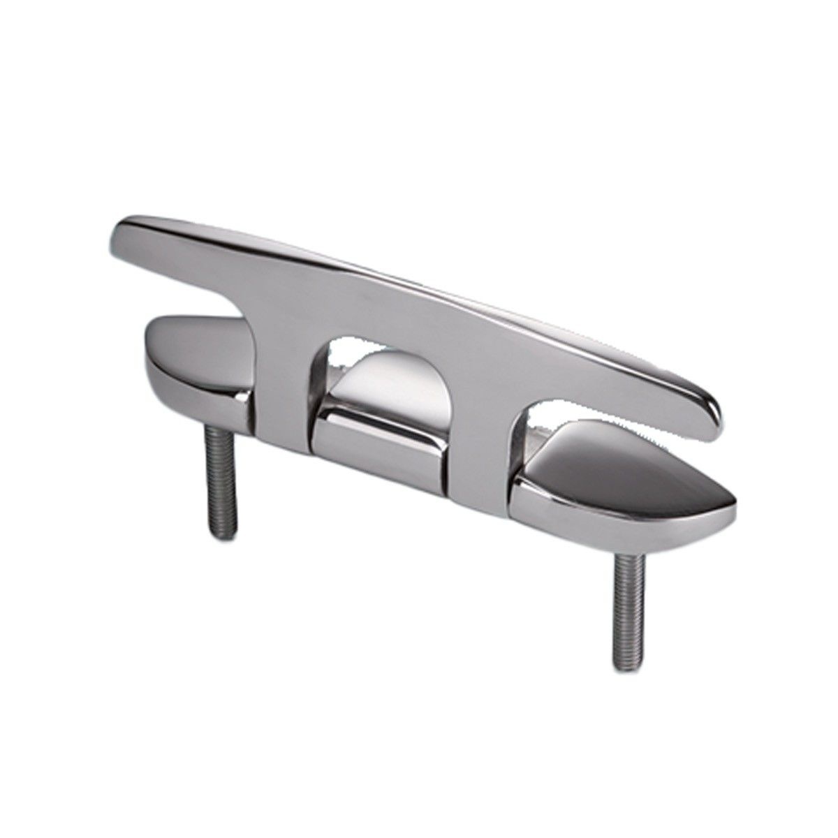 Hoogwaardig gepolijste RVS vouwcleat met antirammelsysteem. Studmontage, inclusief ringen en moeren.