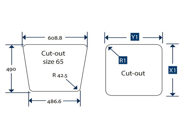 | Maat | X mm | Y mm | Z mm | R mm | X1 mm | Y1 mm | R1 mm |