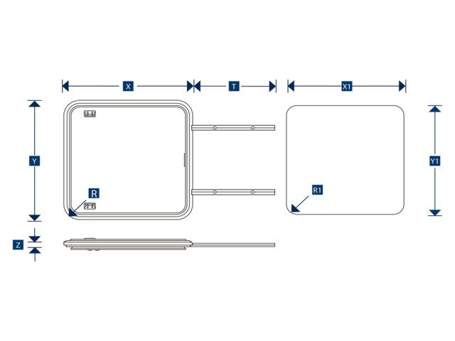 | Maat | X mm | Y mm | Z mm | R mm | T mm | X1 mm | Y1 mm | R1 mm |