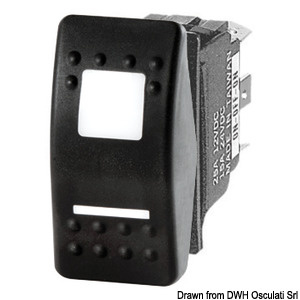 Geleverd met dubbele rode led: één voor het symbool, dat altijd brandt, de tweede voor een speciale gleuf onder het symbool die aangaat wanneer de symboolindicator wordt geactiveerd.