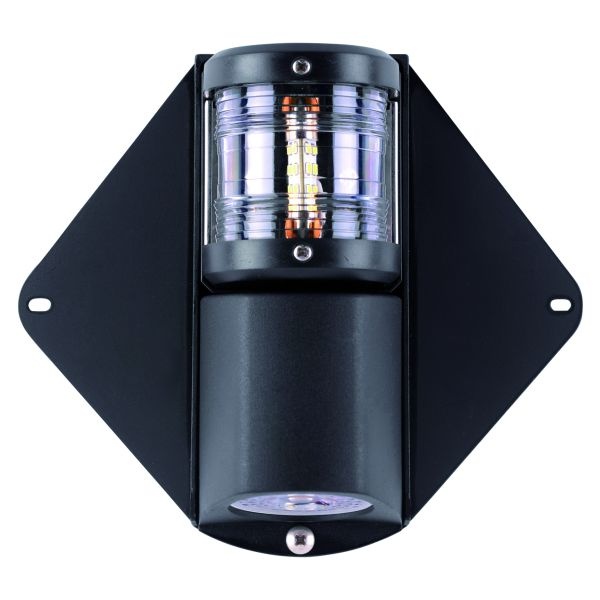 Toplicht in combinatie met een deklicht in LED. De lamp is voorzien van buigbare montageflappen voor montage op een mast. Voor boten tot 12m.