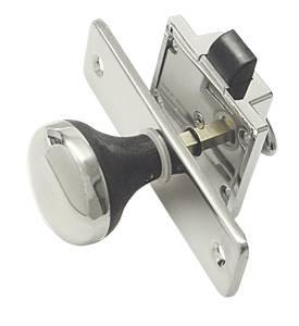 - Opbouw deurslot met aan de binnenkant een draaibare knop om de deur te openen.