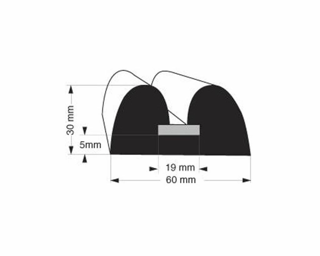 Flexibel en supersterk volrubber PVC B profiel stootrand.