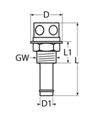 Rechte slangaansluiting, hoogglans gepolijst vaar slang ø 16 mm,