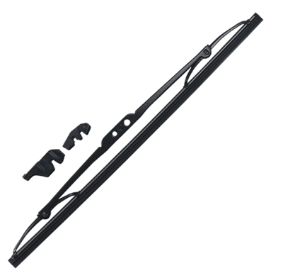 ruitenwisserblad is gemaakt van verzinkt staal en antireflectie lak. Natuurrubber profiel met inwendig RVS strip. Inclusief twee adapters voor een rechte aansluiting of J‐haakaansluiting.