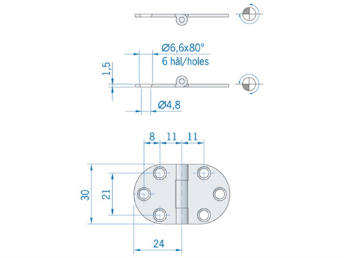 Roca vlakscharnier rond RVS 47 x 30 mm