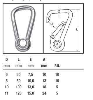 RVS Karabijnhaak met kous - 6x60mm