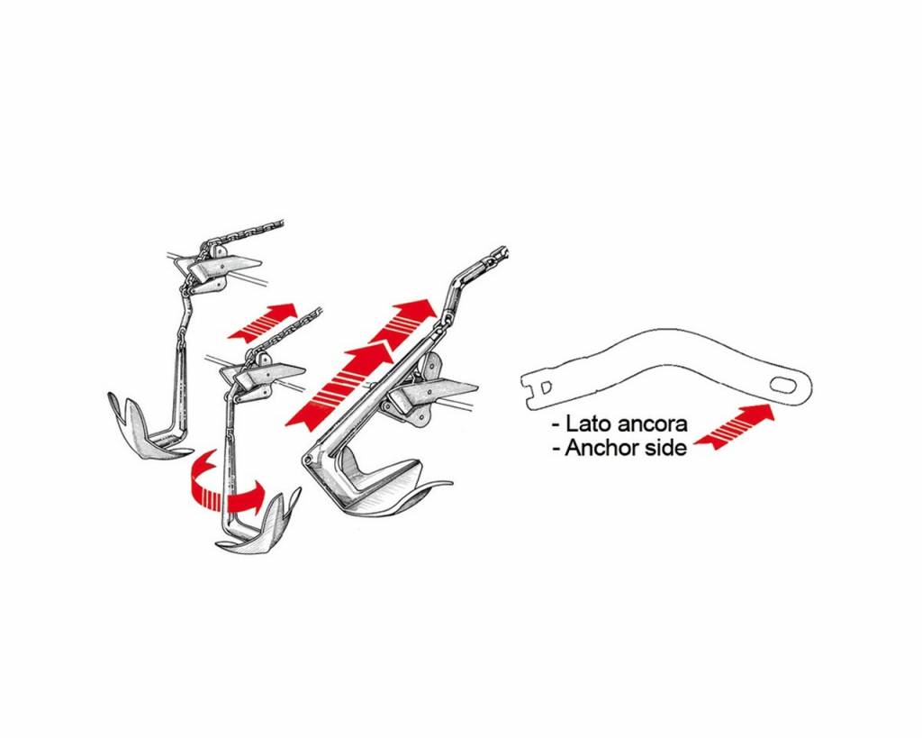 - Bij asymmetrische ankers (Bruce, Delta, Trefoil ® etc.) komt het vaak voor dat de ketting bij het gieren achter het anker verdraaid is. Door deze ankerkettingverbinder draait het anker automatisch in de juiste positie als het op de boegrol of ankerbeslag getrokken wordt.