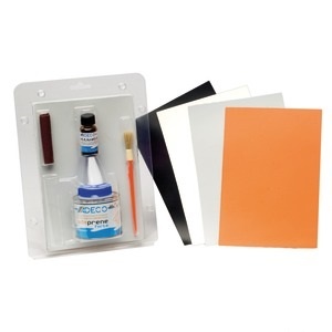 - Kit voor PVC-opblaasboten met: 125 gr lijm + PVC reinigingsproduct + 2 x 14,5x21,5 cm neopreen pleisters + borstel + activator + gebruiksaanwijzing