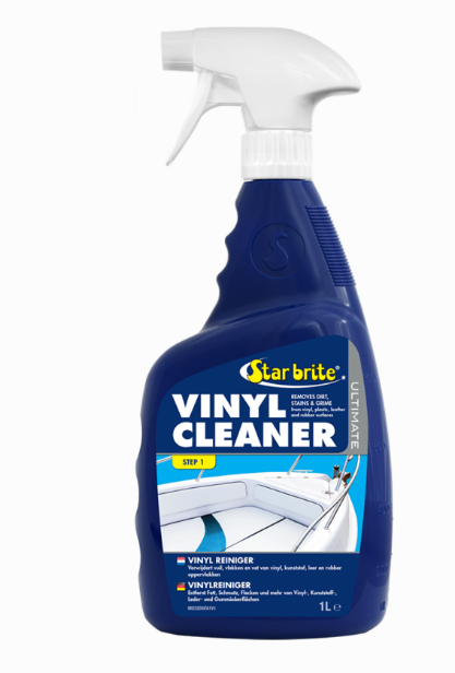 Star brite Ultimate Vinyl Reiniger is ontwikkeld om het hardnekkigste vuil, roet en vettige vlekken van vinyl, plastic, rubber en leren oppervlakken te verwijderen. Gebruik op auto-, camper- en bootbekleding, binnen- en buitenbekleding, uitrusting voor slecht weer, buitenkussens of luifels en meer.
