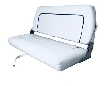 Stuur bank boot de Luxe Twin wit. De Klapbank Coach de Luxe Twin met dikke kussens vinyl met bies. Met zilver-geanodiseerde aluminium scharnieren en boring voor universele bevestiging. Zonder stoelpoot.