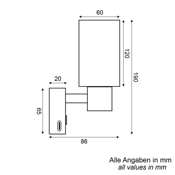 Talamex Wandlamp Piazaa LED Touch Dim 10-30 Volt met USB-C Lader