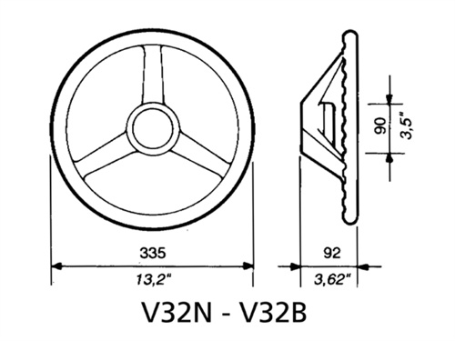 Dit Ultraflex Stuurwiel Type V32 Zwart is een degelijk driespaak stuurwiel dat goed staat bij verschillende soorten boten. Het stuurwiel heeft een diameter van 335 mm en een standaard conus van 19 mm (3/4"). Het handvat is vervaardigd van hard kunststof.