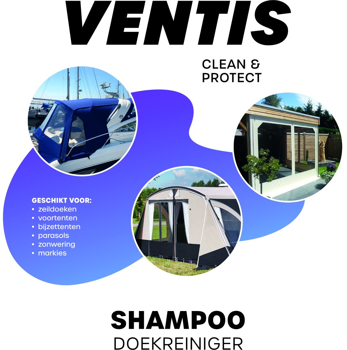 Ventis wordt in de zeilmakerij en door tentmakers gebruikt om doek, zeil en raamfolie te onderhouden. Je reinigt met de shampoo en impregneert met de doekwaterdichting-spray. Deze schoonmaakartikelen zijn in Nederland ontwikkeld door professionals uit de zeilmakerij.