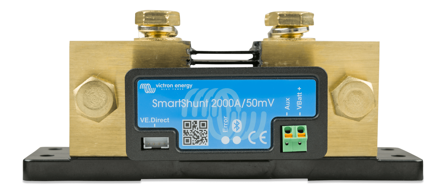 De SmartShunt van Victron energy is een alles-in-een accumonitor, enkel zonder een beeldscherm. Uw telefoon werkt als het beeldscherm. De SmartShunt maakt via Bluetooth verbinding met de VictronConnect-App op uw telefoon (of tablet) en u kan gemakkelijk alle gecontroleerde accuparameters lezen zoals oplaadstatus, duurtijd, historische informatie en veel meer.
