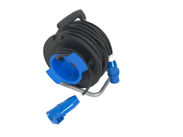 Neopreen kabelhaspel met 50mtr CEE stekker naar CEE stekker contra.