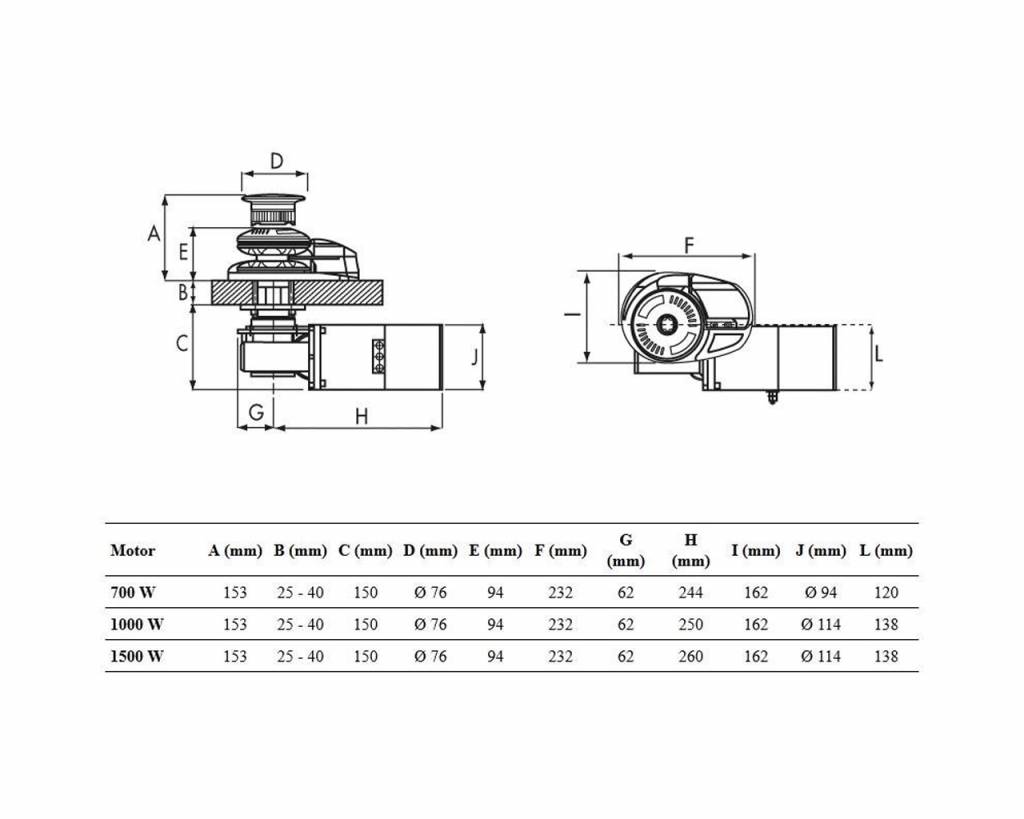 | Aluminium, 700 Watt, 6 mm, zonder verhaalkop | 12 V | 110 Amp | 850 kg | 115 kg | 460 kg | 19 - 25 m/min | 18 kg | - |