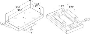 Zitvoet met schuifinrichting van 4 mm dik aluminium. Het verstelbereik voor vooruit en achteruit is 127 mm (5").