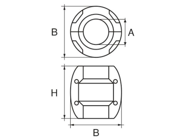 | A Ø mm | B Ø mm | H mm | Gewicht kg |
