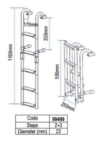 Zwemtrap klapbaar / RVS - Breedte 250mm